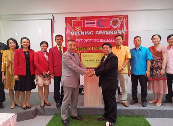 2019年7月31日,我校校党委书记郭庆一行前往泰国廊曼技术学院挂牌成立“重庆工商职业学院泰国海外工作站”,这也是我校在海外建立的首个以职业技术技能服务为主要工作的机构。泰国教育部职业教委委员会副秘书长帕洽康•强塔拉奇先生、廊曼技术学院院长皮彻•素坤先生院方代表参加了揭牌仪式。