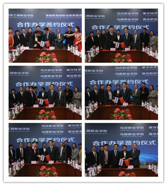 随后,李国校长代表学校与泰国教育部职业教育委员会以及泰国乌汶职业学院、泰国攀牙技术学院、泰国普吉职业学院、泰国乌隆职业学院分别签订了合作备忘录。