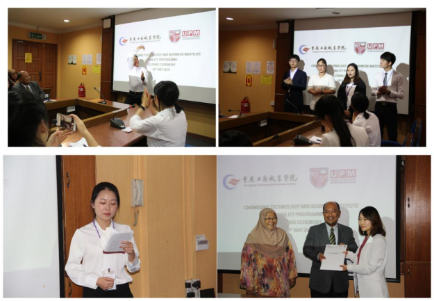 十天的学习交流收获颇丰,在结业典礼上,博特拉大学国际处主任Zainal Abidin Talib教授为我校师生颁发了结业证书,对我校学生在交流期间的优异表现给予了高度评价,并期待与我校有进一步合作。管理学院的曾永凤同学作为学生代表发表了全英文演讲。她表示,在马来西亚的学习交流增长了知识,开阔了视野,收获了友谊,并对博特拉大学师生的热情帮助及一直陪伴他们的老师们表达了感谢。我校学生在结业典礼上表演了太极、舞蹈、合唱及曲艺三句半,得到博特拉大学师生的好评。