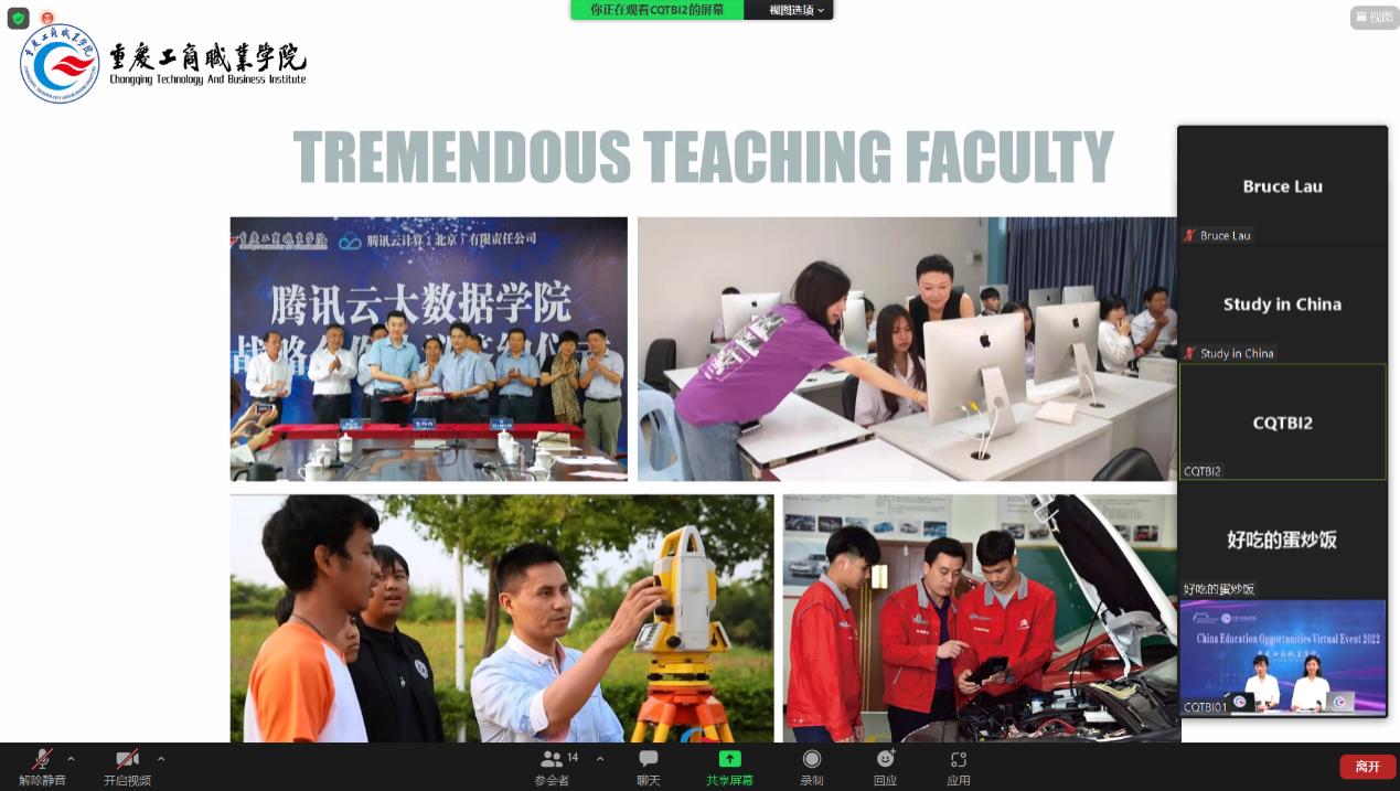 【供稿/国际交流中心】4月27日,我校作为重庆市唯一高职高专参展院校,与重庆大学、西南政法大学、重庆医科大学等院校共同参加了由中国教育国际交流协会主办的2022年中国高等教育国际招生线上展活动。