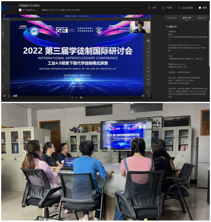 5月25日,为进一步推进学校国际化办学进程,国际交流中心组织我校传媒与设计学院、智能制造与汽车学院、城市建设工程学院、电子信息工程学院等四个二级学院共41名专业教师通过在线会议方式,参加了由中国教育科学研究院主办,全国现代学徒制专家和指导委员会以及英国教育科技协会(AET)共同协办的第三届学徒制国际研讨会。