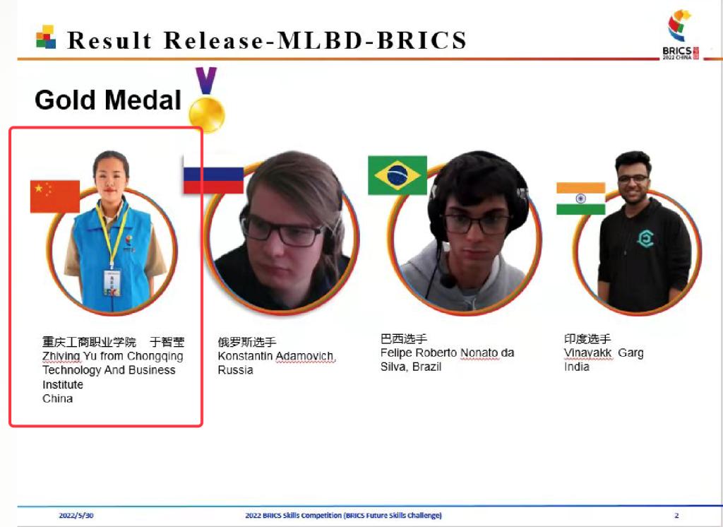 【供稿/电子信息工程学院】近日,2022金砖国家职业技能大赛启动赛上传来捷报,重庆地区高职学子在该大赛和机器学习与大数据赛项上的首金诞生,为我校电子信息工程学院学生于智莹摘得。