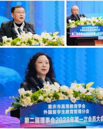 为学习贯彻党的二十大精神和习近平总书记关于教育的重要论述,推动全市来华留学事业高质量发展,3月22日,重庆市高等教育学会外国留学生教育管理分会第二届理事会2023年第一次会员大会在我校华岩校区举行。市外办涉外管理处处长杨瑜、市公安局出入境管理总队总队长张攀、市教委国际合作与交流处处长李斌、市高教学会秘书长余志祥和我校校长李国共同出席会议并讲话,全市37位会员单位理事及重庆市来华留学工作专家、来华留学先进个人代表100余人参加会议。