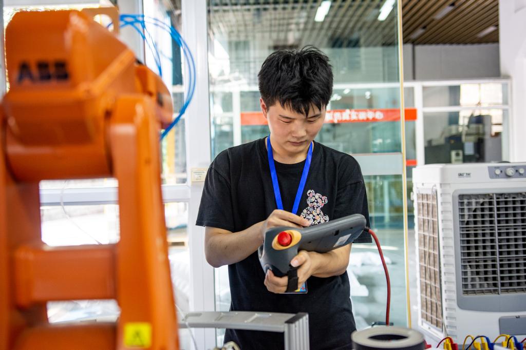 大赛聚焦高端制造、数字经济、新产业、新业态、新技术等重点领域,以工业机器人数字孪生为核心,以3C行业最典型的异形芯片插件工艺过程以及轨道行业铁轨的焊接打磨为任务主线,考核工业机器人码垛、涂胶、装配、焊接、打磨等工艺的应用,其涵盖了工业机器人系统的虚拟调试、软硬件安装调试、集成应用等工作领域,旨在提升金砖+国家职业院校师生在创新、协调、组织、合作等方面的能力,丰富金砖+国家职业院校和企业交流与合作内容,为金砖国家培养国际化高质量技术技能人才。