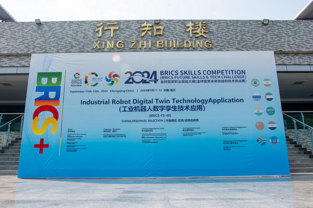 【供稿/智能制造与汽车学院】9月11日-12日,2024金砖国家职业技能大赛(金砖国家未来技能和技术挑战赛)工业机器人数字孪生技术应用赛项区域选拔赛(重庆市)在我校成功举办。来自重庆工商职业学院、重庆工业职业技术学院、重庆机电职业技术大学等12家单位的21支队伍参赛。
