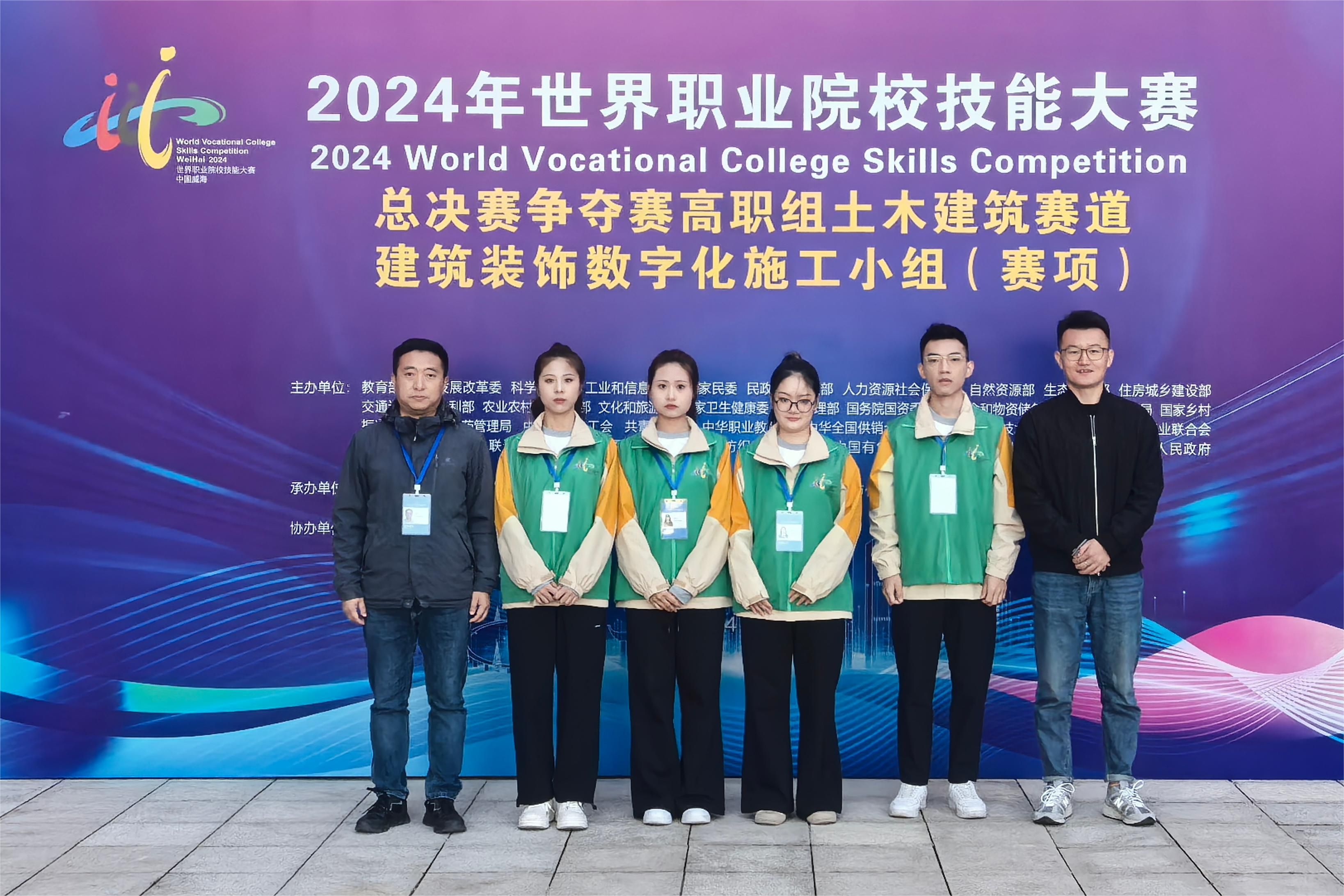 【供稿/城市建设工程学院】10月28日,2024年世界职业院校技能大赛总决赛争夺赛高职组土木建筑赛道建筑装饰数字化施工小组(赛项)落下帷幕。经激烈角逐,我校城市建设工程学院2021级建筑室内设计专业学生阳康,2022级建筑室内设计专业学生陈悦、牛思宇、张天林组成的参赛队伍(指导教师:张驰、温和),斩获银奖。