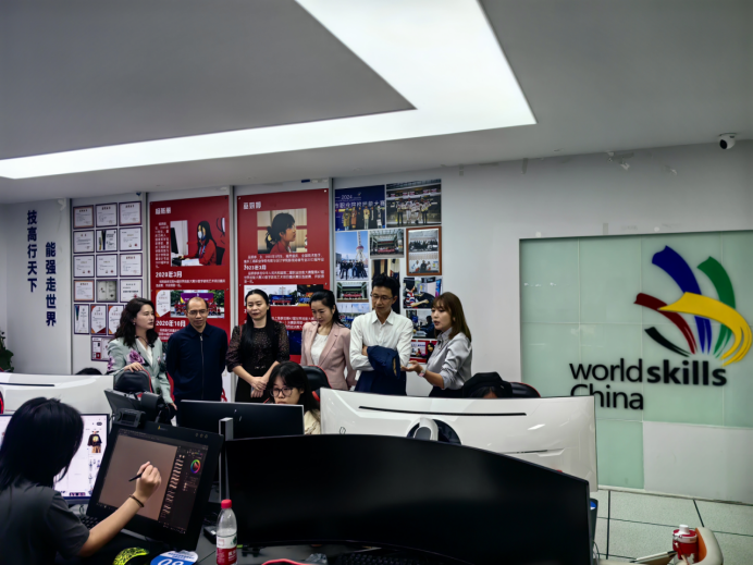 调研期间,周毅一行还前往学校世界技能大赛“3D数字游戏艺术”赛项国家集训基地、创意九龙众创空间、教学实习实训场所等地,详细了解学校历史沿革与国际化办学成效。