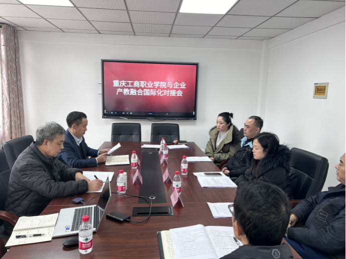 为深化产教融合、服务区域开放型经济发展,2025年12月4日下午,合川区经济和信息化委员会组织召开校企产教融合国际化对接座谈会。会议由区经济信息委副主任张世用主持,我校相关负责人及重庆迈高电梯、德佳肉类科技、鼎工机电、银翔摩托车、津沙摩托车等五家企业代表共同参会。