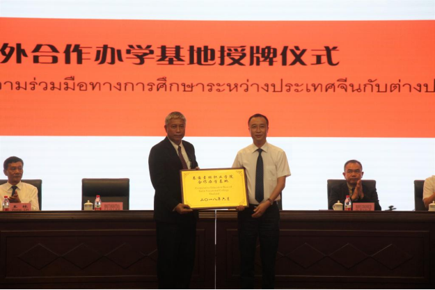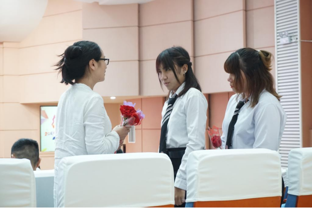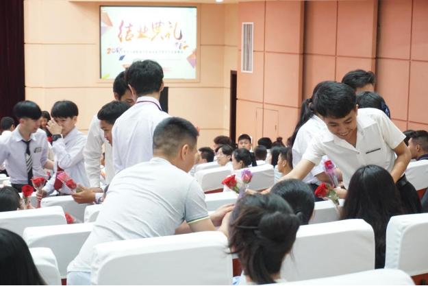 结业典礼上,学校与泰国素林职业学院、泰国武里南技术学院、泰国清莱府康洽拉皮塞技术学院等8所泰国职业院校建立了合作关系,并进行了中外合作办学基地授牌仪式。全体留学生还在为现场的老师们献上了鲜花,以表达感激之情。