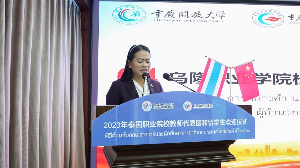 来自泰国乌隆职业学院校长玛努萨侬·拉缇婉女士表示非常荣幸参加此次欢迎仪式,将伴随中泰职业院校交流合作的不断加深,持续深入推进两国文化教育交流互鉴,为积极培养国际化复合新型人才提供技术支撑。