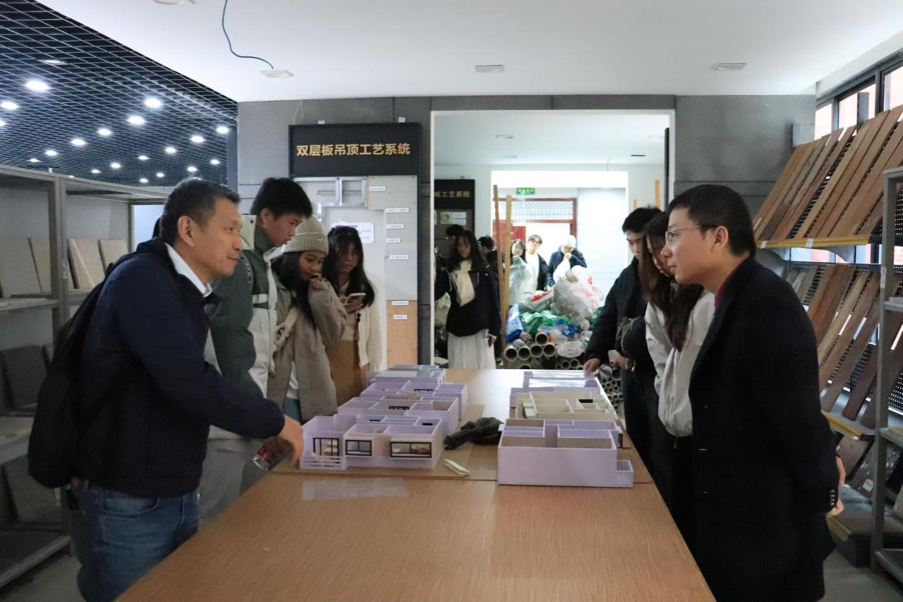 研学团一行参观考察了我校城市建设工程学院和传媒与设计学院实训中心、学生工作坊以及教师工作室,深入了解了我校的硬件设施和教学环境。随后,他们欣赏了学生们的优秀设计作品,并对他们的创新思维和实践能力表示赞赏。此外,研学团还体验了数字孪生建筑交互设计的技能实训,并参与了一堂沉浸式花艺特色课堂。这些活动不仅使他们亲身感受到我校的教学氛围和学术水平,也加深了对相关领域的理解和认识。